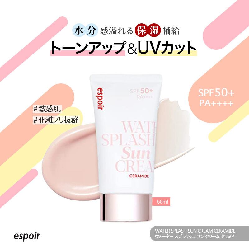 espoir エスポア ウォーター スプラッシュ サンクリーム セラミド SPF50+ PA++++ 60ml 日焼け止め 化粧下地 敏感肌 保湿 トーンアップ