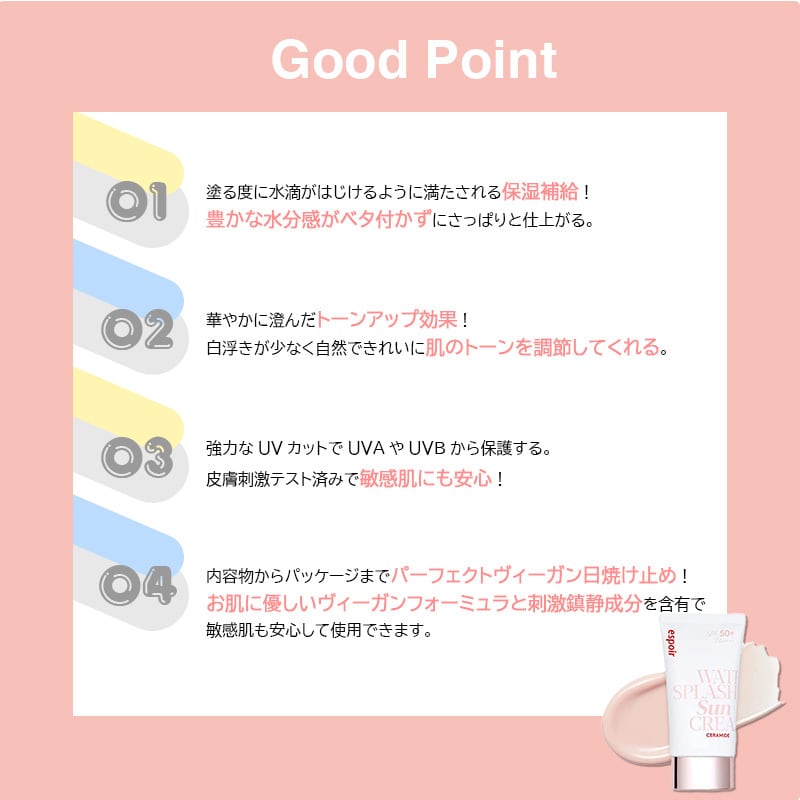 espoirから「ウォーター スプラッシュ サン クリーム セラミド 60ml」販売中です!